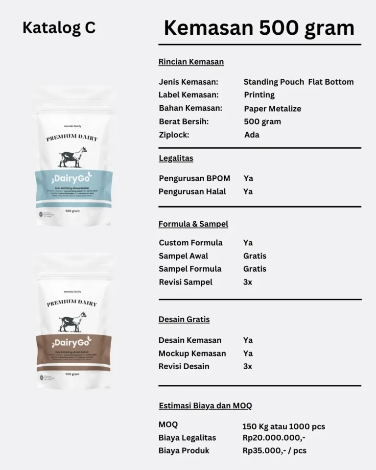 Ayo mulailah berbisnis susu kambing etawa bubuk dengan Merk milikmu sendiri. Tak perlu repot memikirkan perizinan dan produksi karena akan kami bantu, berminat?
